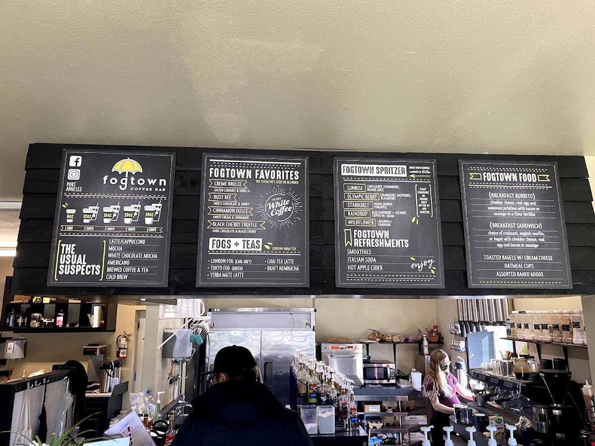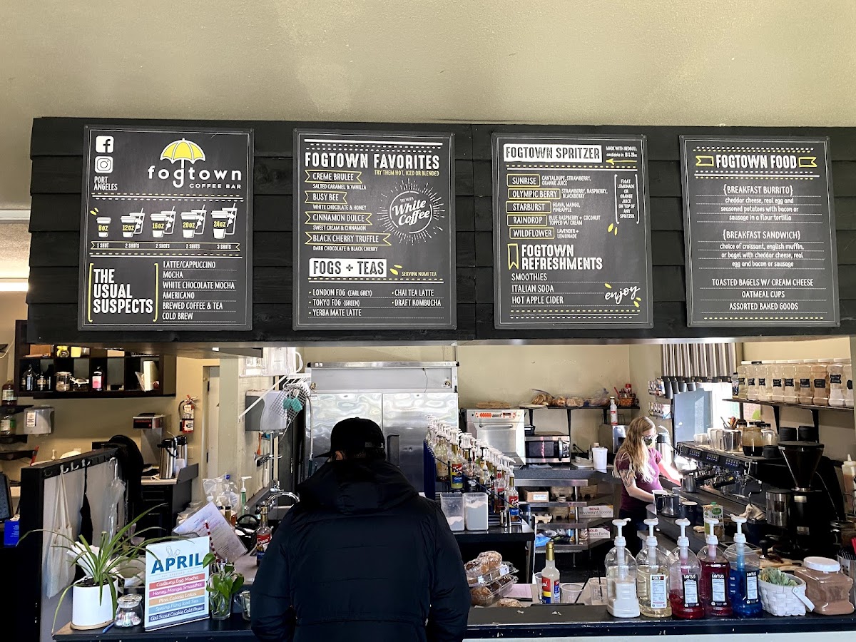 Welcome to Fogtown Coffee Bar, a charming spot in Port Angeles where coffee lovers and foodies can indulge in delightful brews and satisfying bites. The menu boasts an impressive selection of crafted beverages, including classic lattes, chic mochas, and refreshing cold brews. Unique options like the Tokyo Fog and Yerba Mate Latte showcase their flair for innovation.